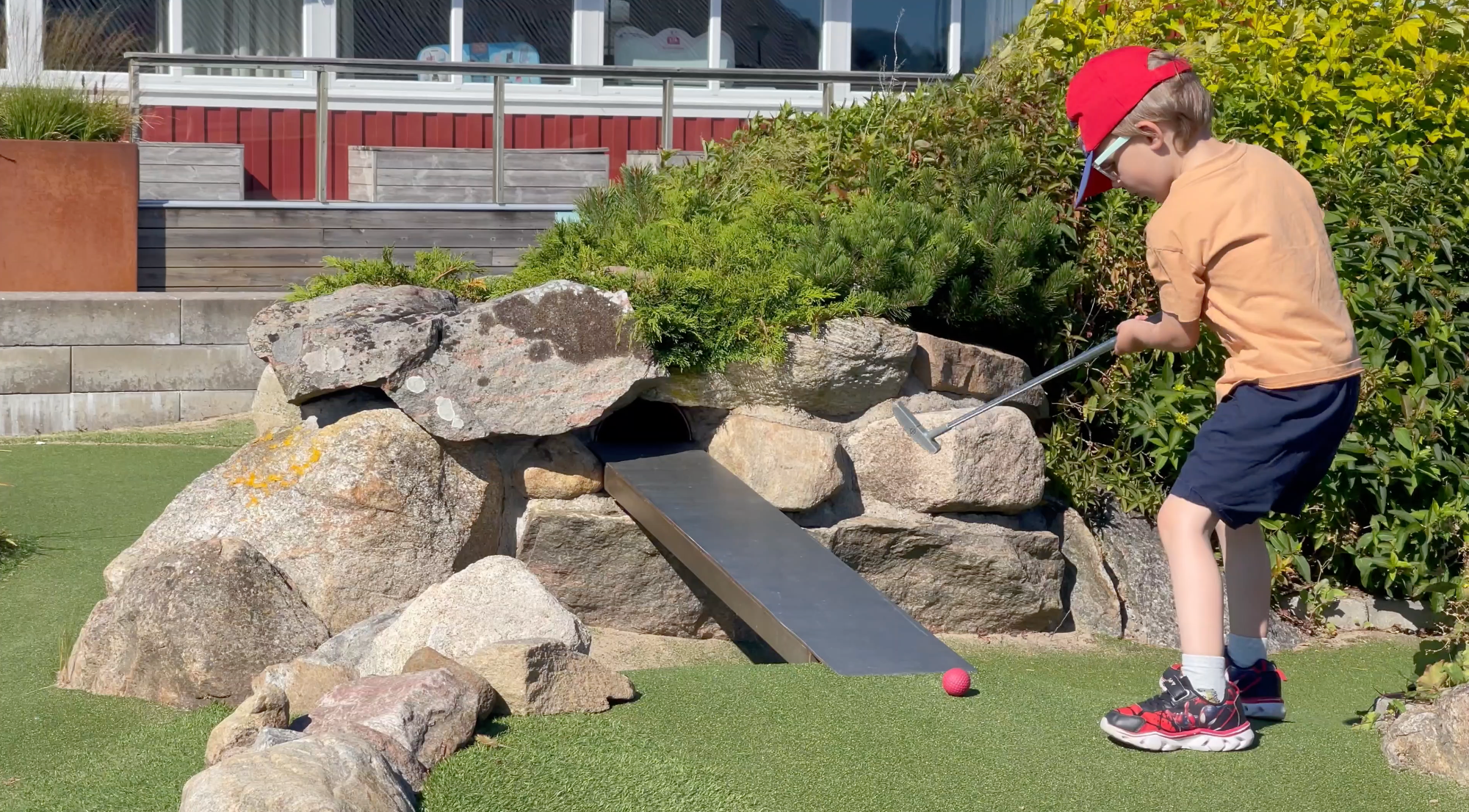 Den typen av ögonblick är svåra att planera fram, men lätta att minnas. Självklat var kameran avstängd i ögonblicket men Leo skulle visa en gång till! Tyvärr missade bollen hålet med millimetrar andra slaget. Vi avslutar besöket med att äta glass och låter Leo härja en stund på lekplatsen innan vi åker tillbaka till Björkäng.