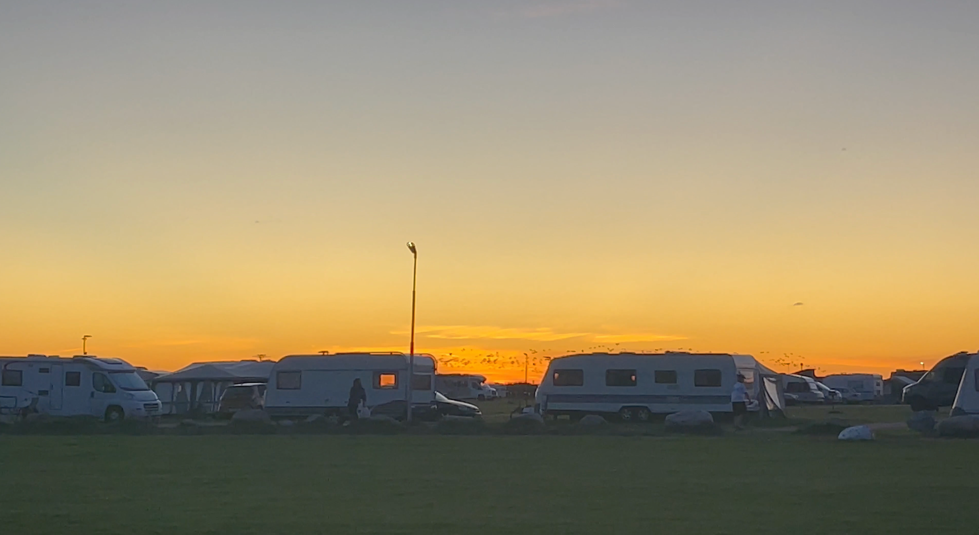 Det är kanske inte det första man hoppas se när man campar vid havet, men samtidigt är det tydlig och ärlig information. För oss blev det ingen badsemester den här gången, men stranden fick ändå en viktig roll – som plats för promenader, kvällsreflektioner och solnedgångar.