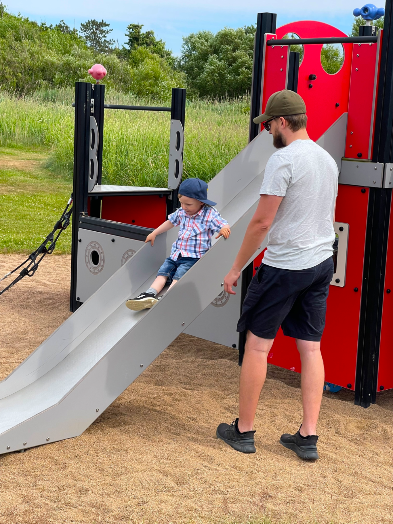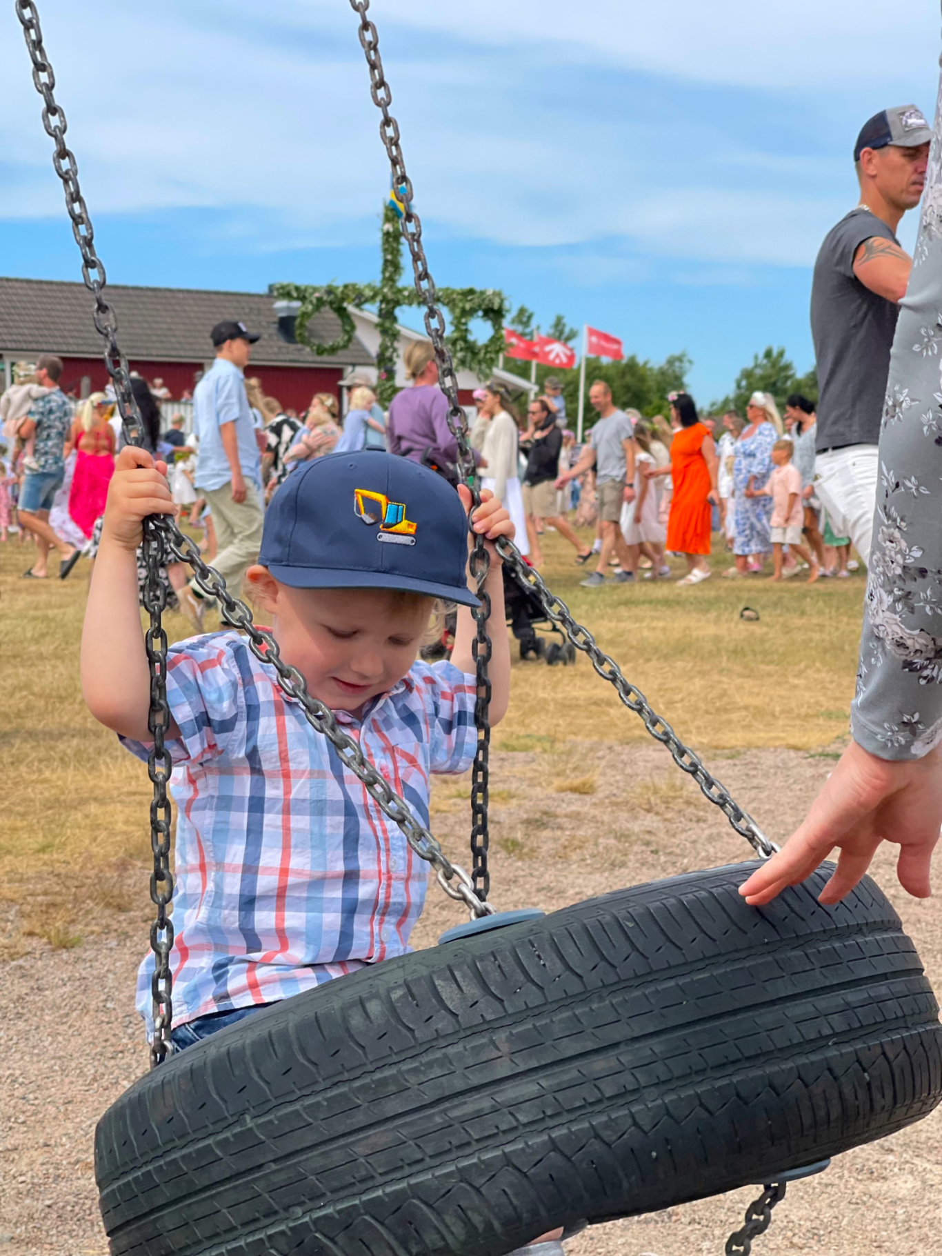 Dansen runt stången blev precis så som midsommar ska vara. Små barn som följde rörelserna så gott de kunde, vuxna som log mer än de dansade, och en stämning som kändes genuin snarare än uppstyrd. Leo älskade det. För honom var det här midsommar på riktigt – musik, rörelse och många andra barn på samma plats.