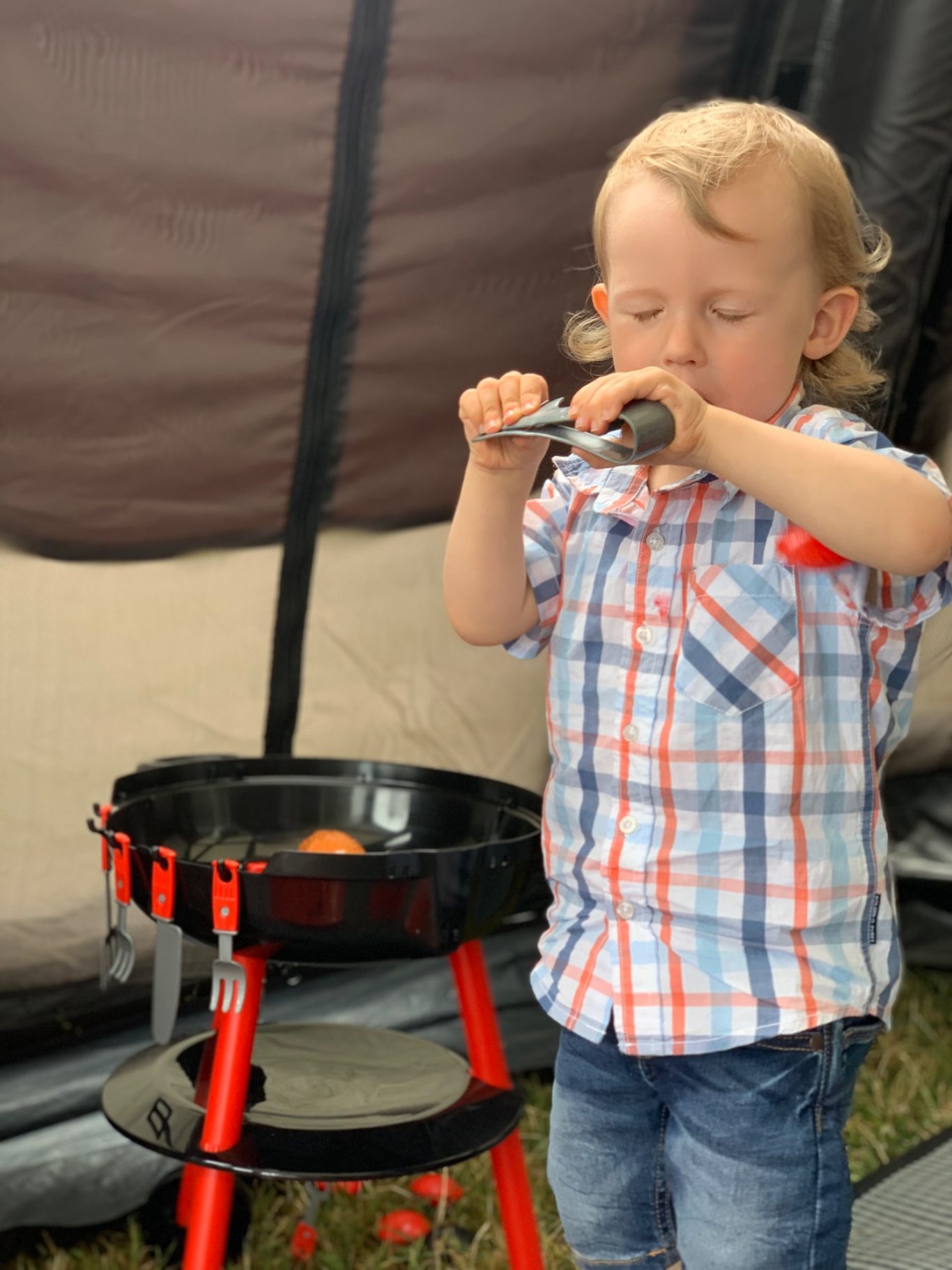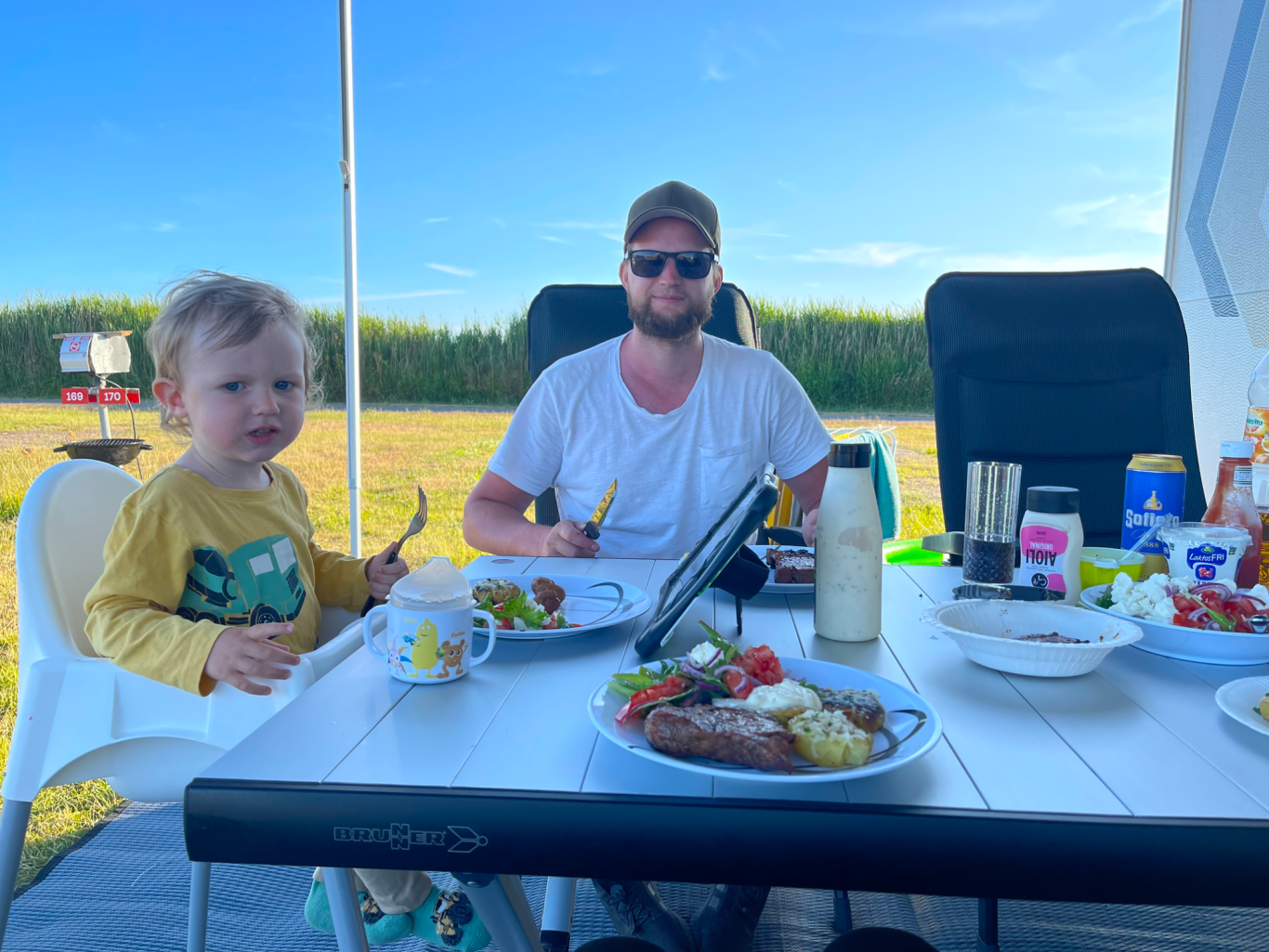 Det var ingen tävling i upplägg eller presentation. Vi åt, njöt och tog det lugnt. På kvällen grillade vi, precis som majoriteten av campingen. Fläskfilé, potatissallad och bearnaisesås.