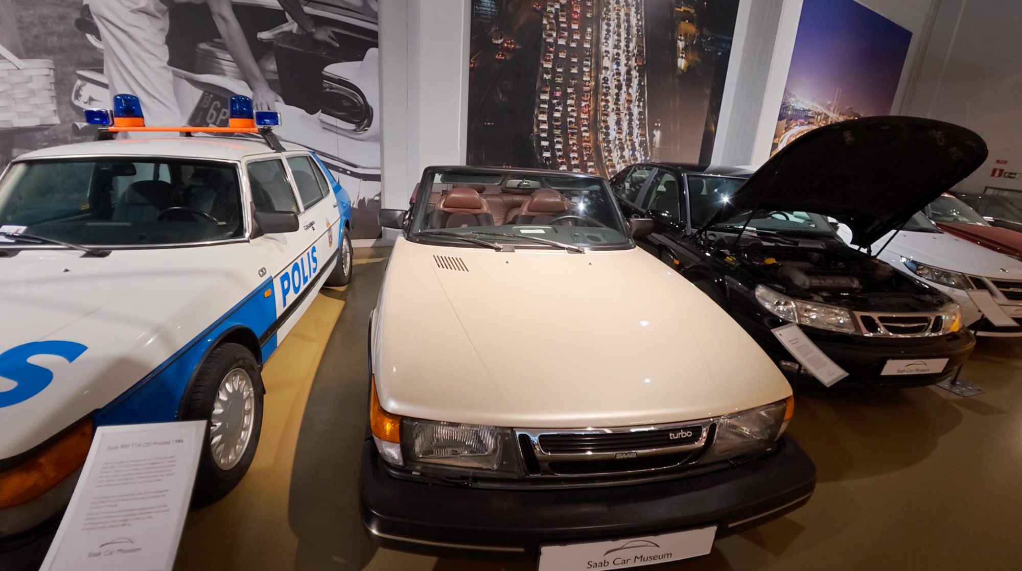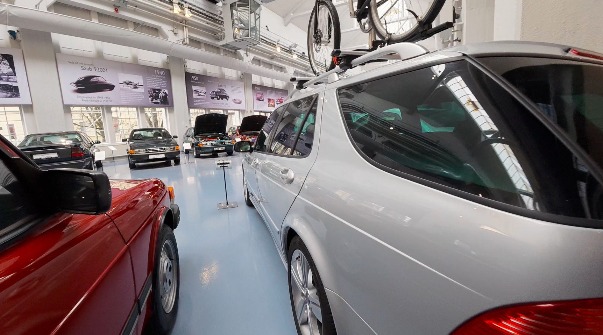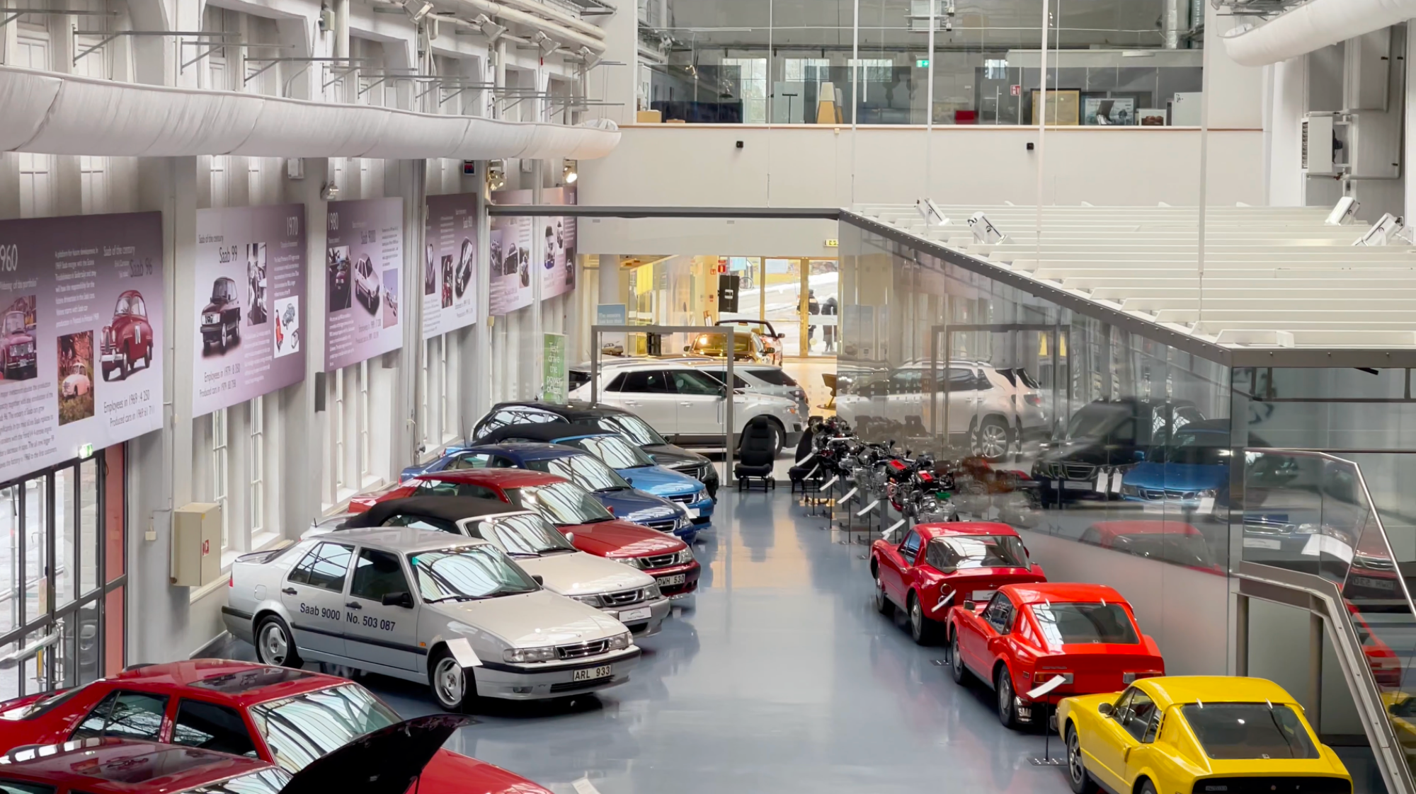 När vi kom in i museet möttes vi av rader av Saabmodeller från olika epoker. Redan vid första blick känns det nästan som att kliva rakt in i en tidskapsel.