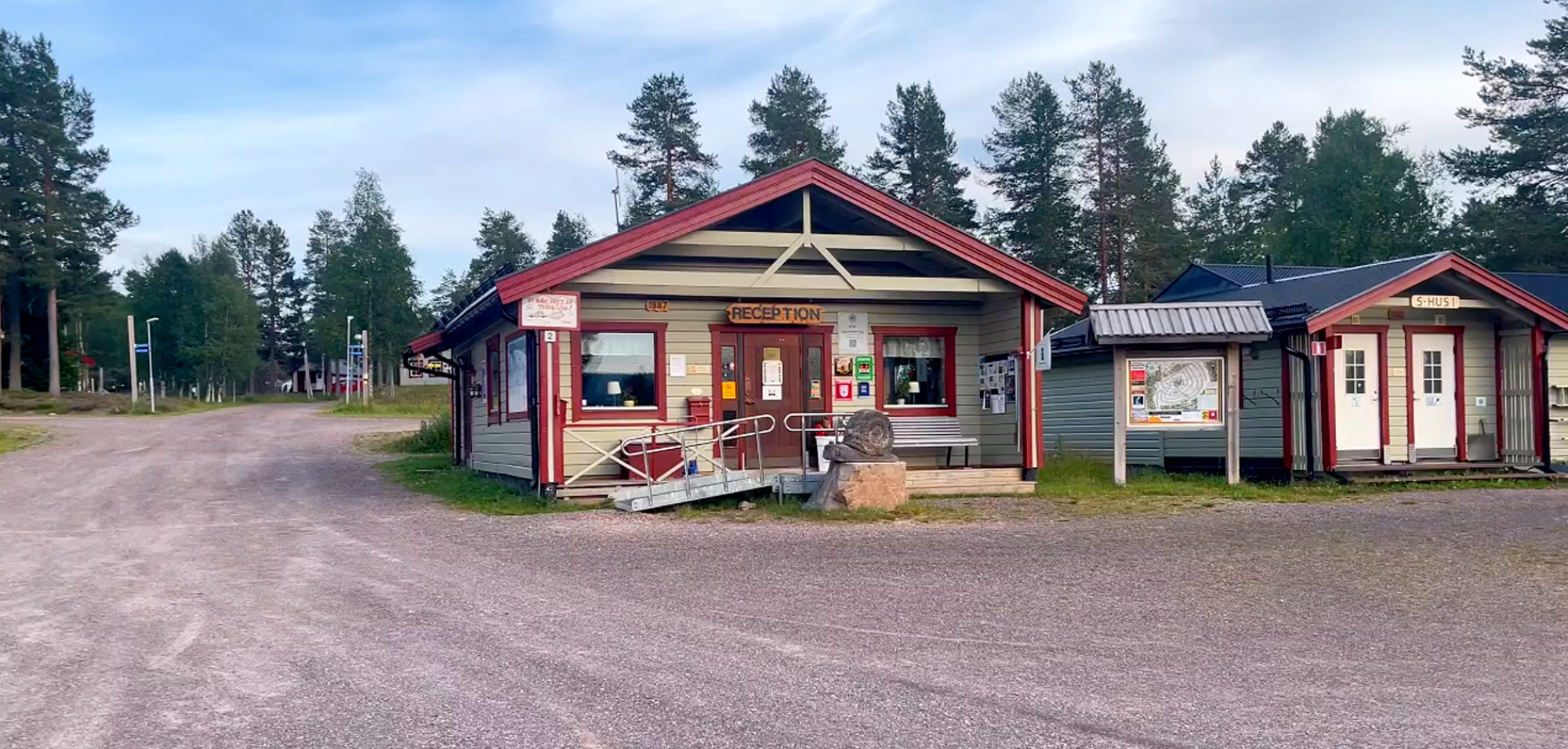 En grusplan vi aldrig glömmer! Nycklar för att komma in på den tomma och personal lösa capingen vsar inga problemm efter att vi listat ut att nycklar till grinden låg i en brevlåda på receptionens vägg. Betala gjorde man genom att swisha. Enkelt och smidigt men sama smidighet var det inte med strömmen. Då vi glömt att införskaffa en adapter till vanlig elkontakt blev det ett projekt i sig att försöka hitta en utan lyck. Tillslut hittade dock Johannes en vanlig kontakt på väggen av receptionen. Vi slog upp tältet mitt emmot och ed turen på vår sida så räckte förlängningskabeln precis till kylväskan.