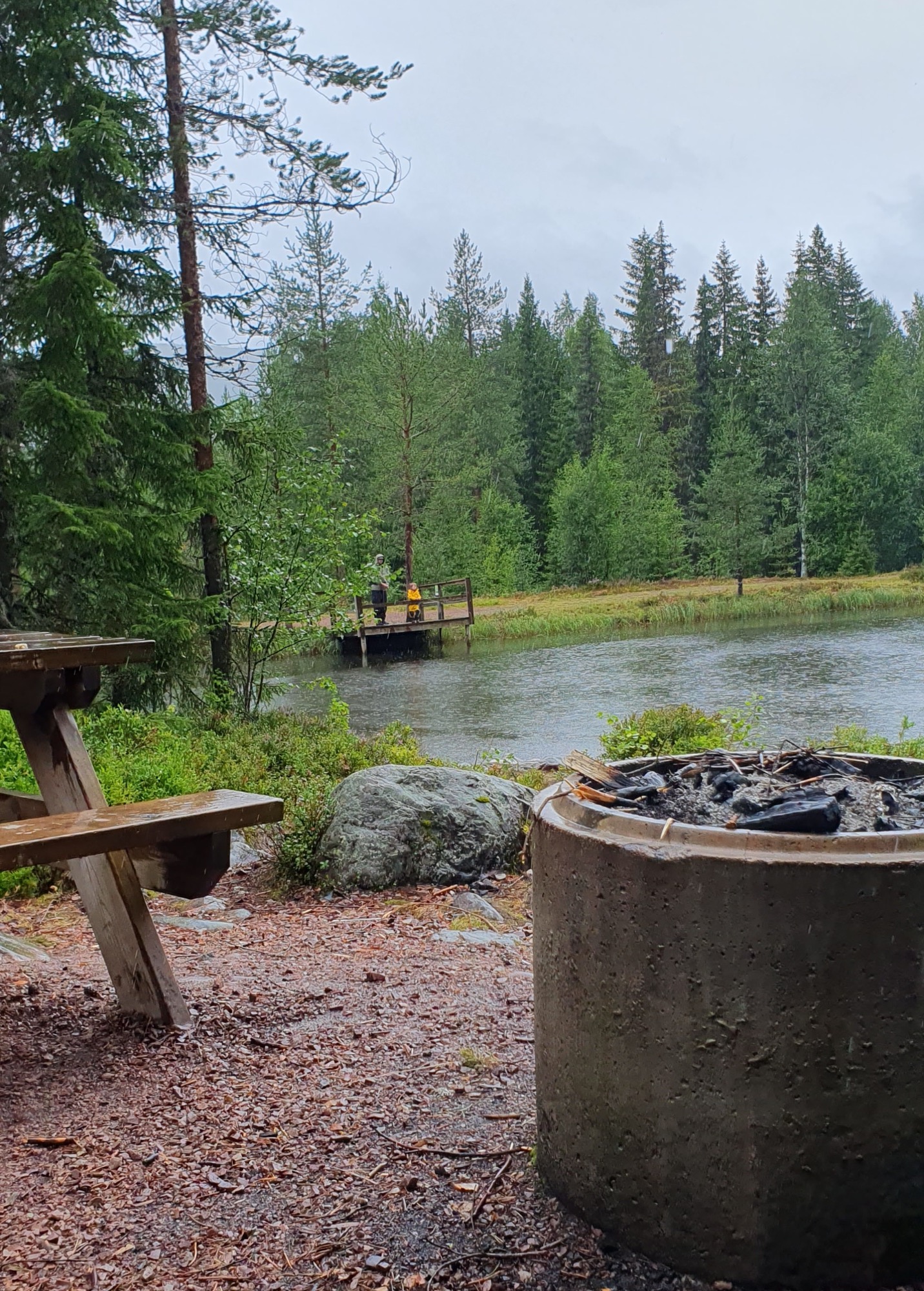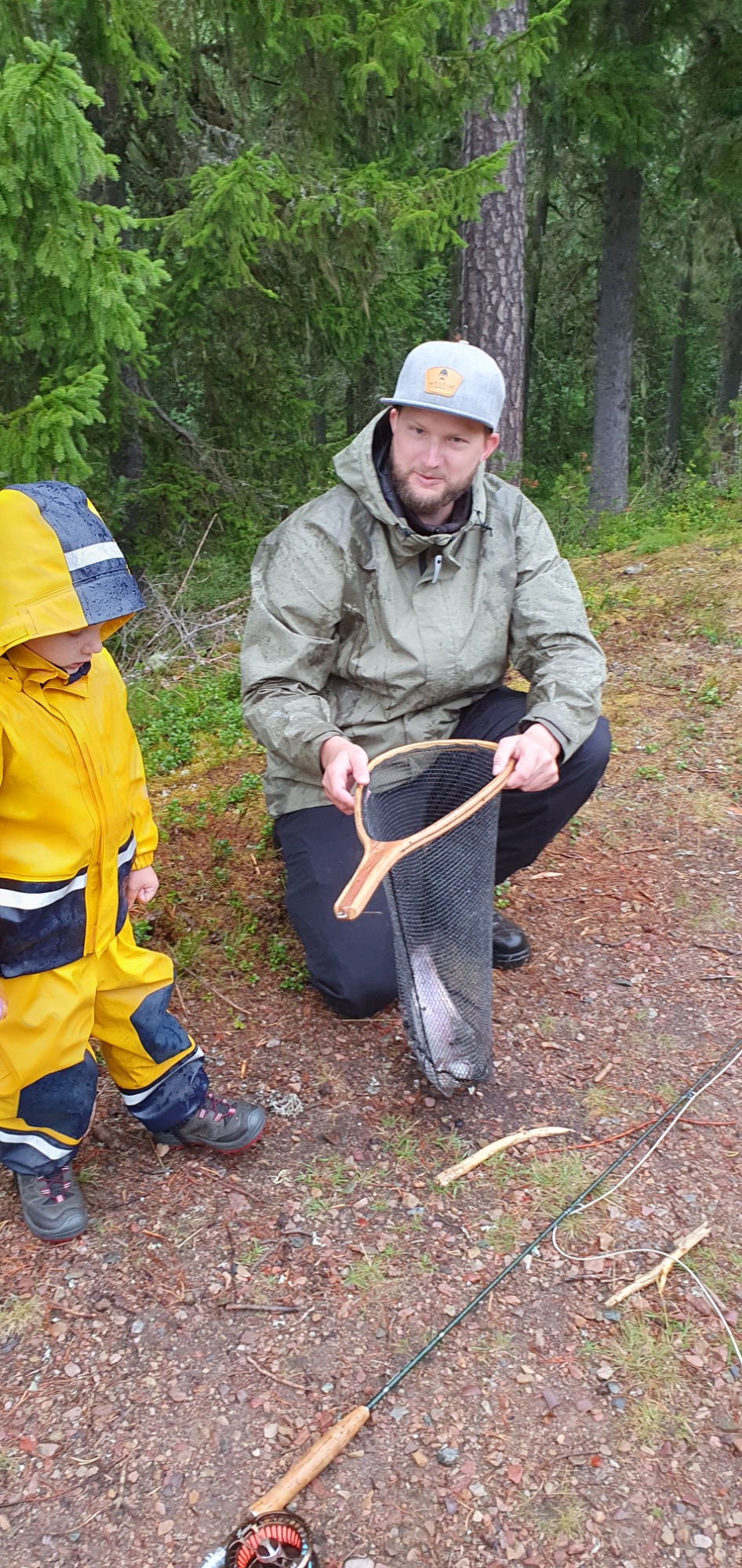 När allt väl var på plats fick vi äntligen andas ut. Rosita lagade tacos, Leo fick – efter många dagar utan skärmar – titta på så mycket iPad han ville, och Johannes gav sig ut för att fiska under kvällen. Regnet fortsatte dock att falla, envist och ihållande, och efter några timmar stod det klart att det varken skulle klarna upp eller att fisken var på rätt humör. Eller så hade Johannes helt enkelt valt fel del av den lilla skogsbäck han hittat.