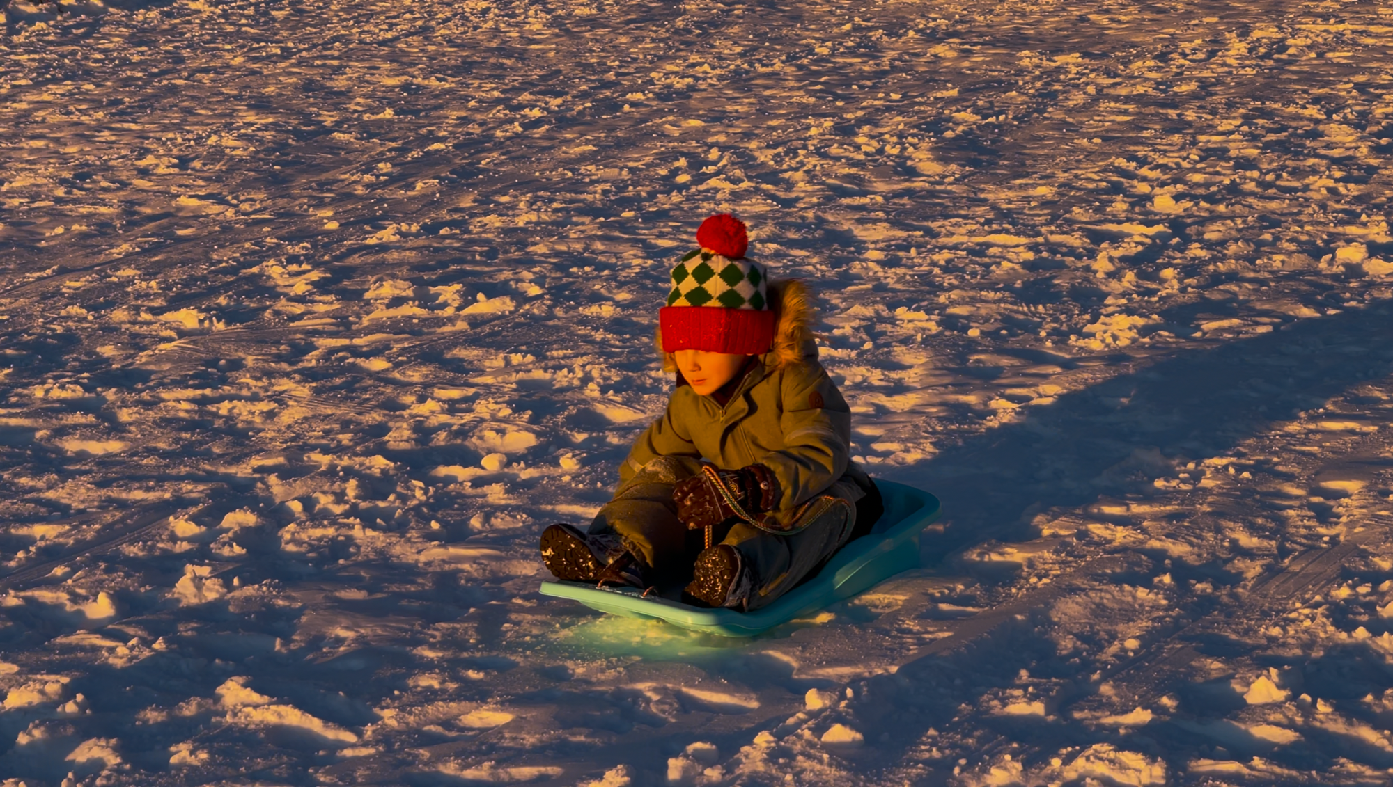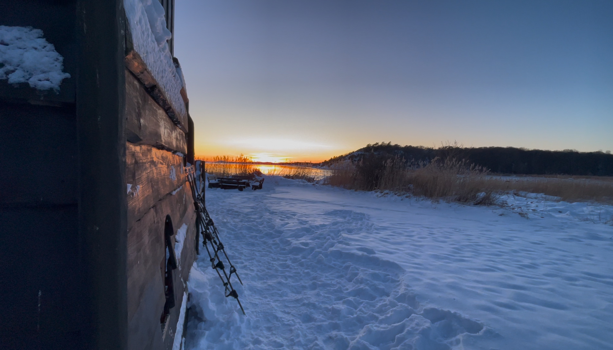 Vår upplevelse – pulka, solnedgång och korvgrillning