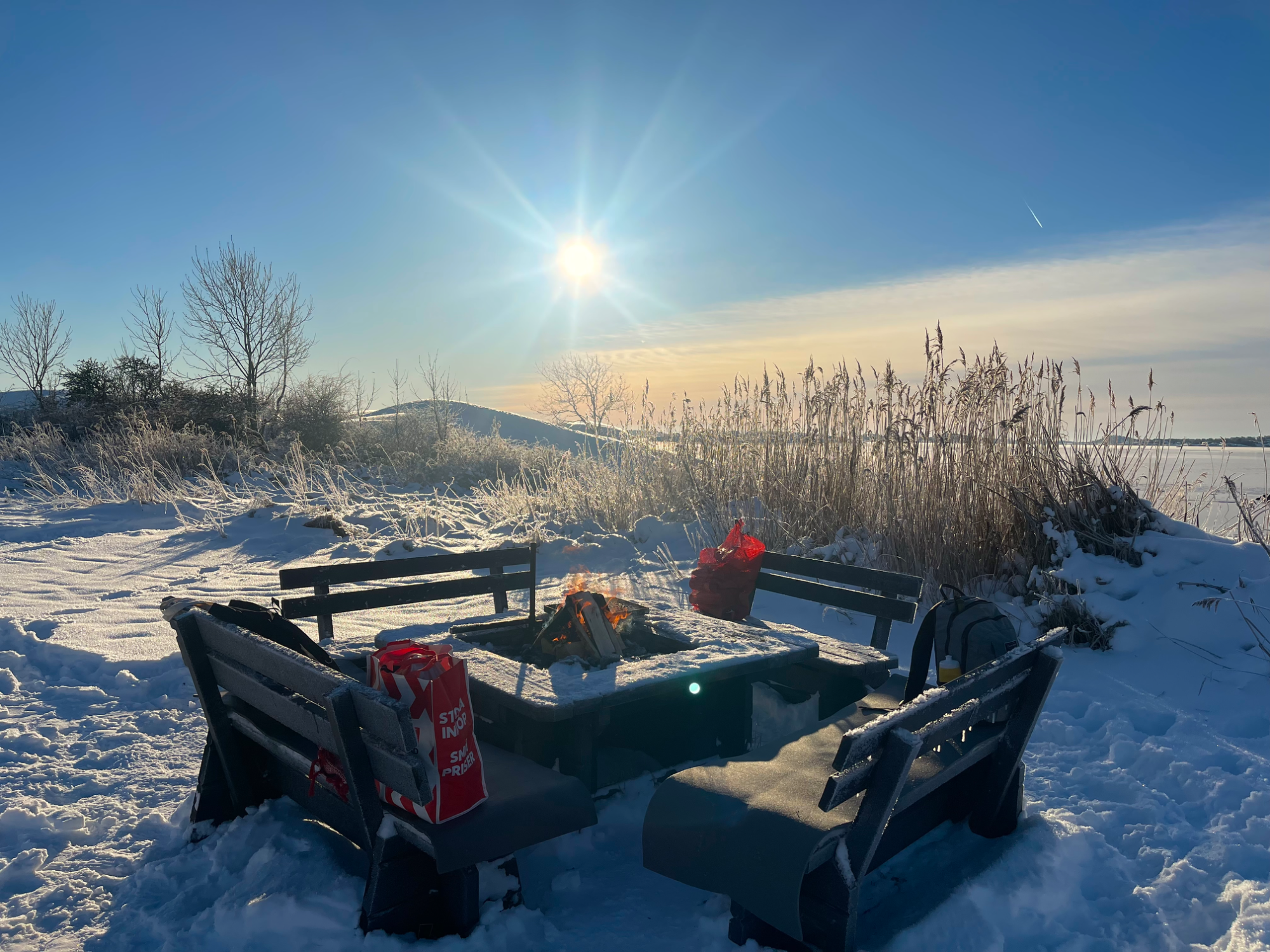 I januari 2026 besökte vi Tjolöholm strax efter en snöstorm. Under en gnistrande solnedgång åkte vi pulka i de öppna backarna på slottsområdet — en perfekt aktivitet för barn och vuxna när snön lagt sig. Bredvid lekplatsen “Montrose” finns grillplatser och bänkar, där vi grillade korv direkt i den klara vinterluften. Den kombinationen av natur, lek och enkel mat i det fria gjorde besöket extra minnesvärt.