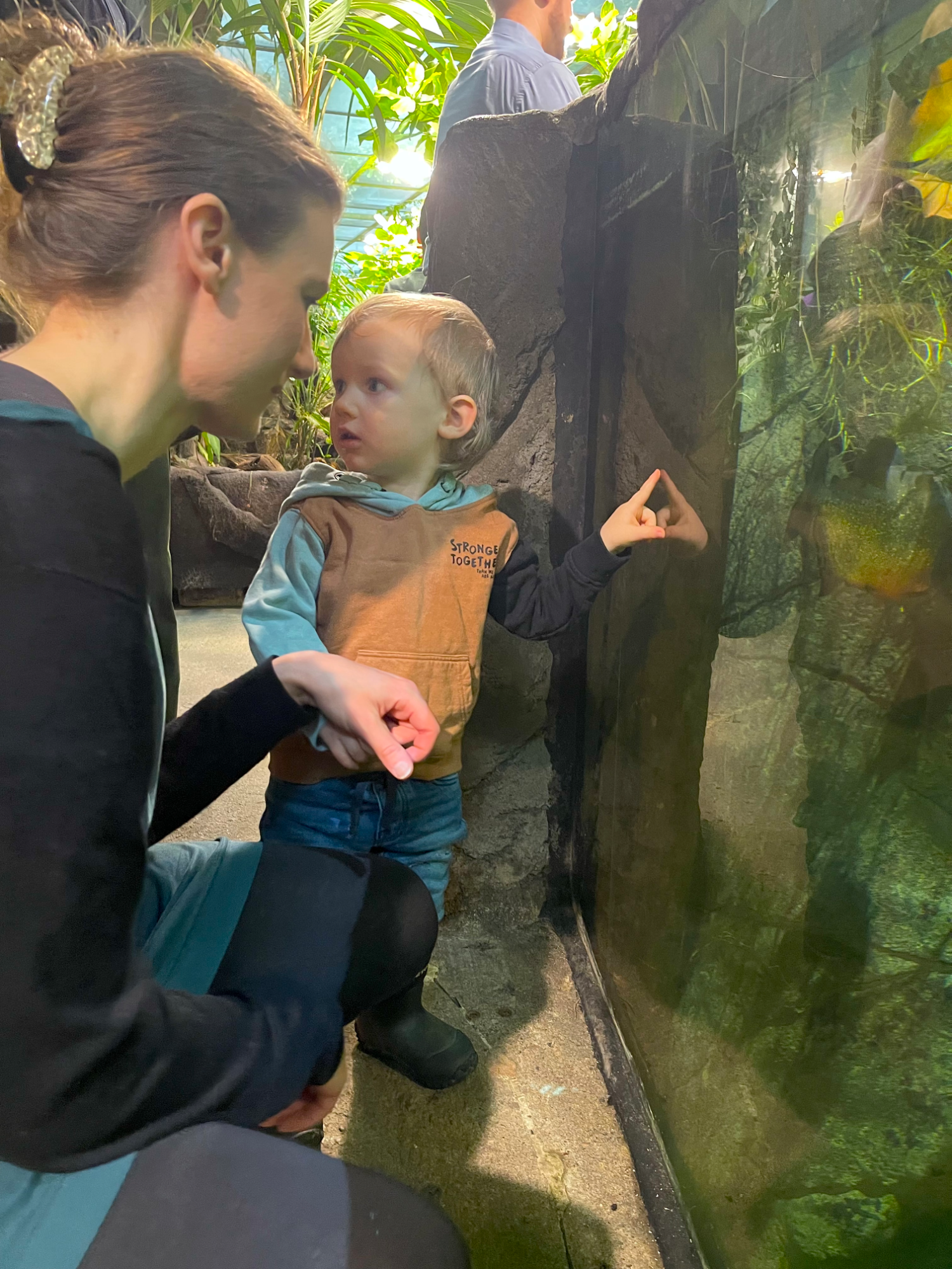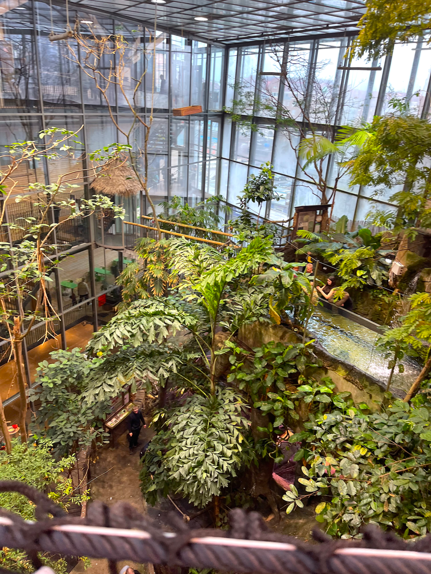 Här kan barnen spana efter apor, färgglada fåglar, grodor och fiskar, medan de vuxna fascineras av hur miljön är uppbyggd för att efterlikna ett riktigt ekosystem. Det är lugnt, stämningsfullt och samtidigt fullt av detaljer att upptäcka – perfekt för att stanna länge.